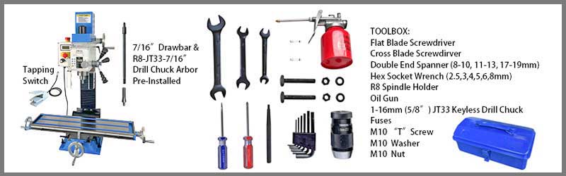 | Range of Spindle Speeds | Variable 100-2250 rpm |