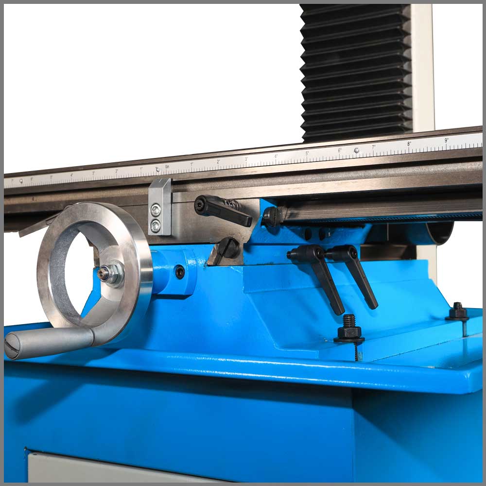 4. Super-rigid precision-ground dovetail headstock column and table ways, precision handwheel control for X, Y, and Z-axis