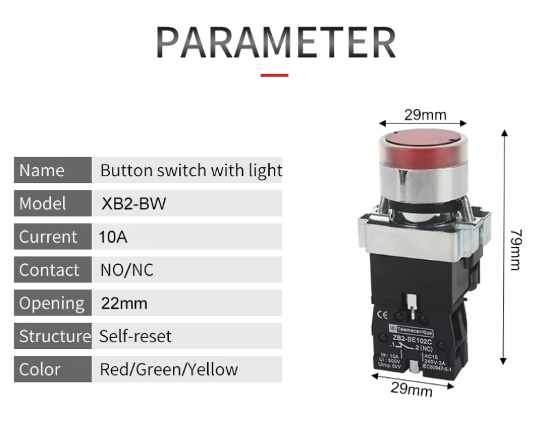 In conclusion, our next-gen push-button switch offers a winning combination of reliability, versatility, and precision. With the unique parameters of 1NO, 1NC, and the XB2-BW design, you can trust that our switch will exceed your expectations and deliver exceptional performance in any industrial application. Upgrade your control systems today and experience the difference with our premium push-button switch!