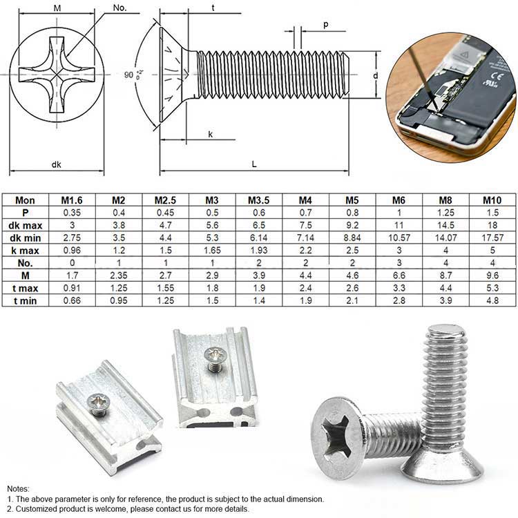 Product Name | Stainless Steel DIN965 M3 M5 Customizable Phillips CSK Countersunk Head Machine Screws | |||||||