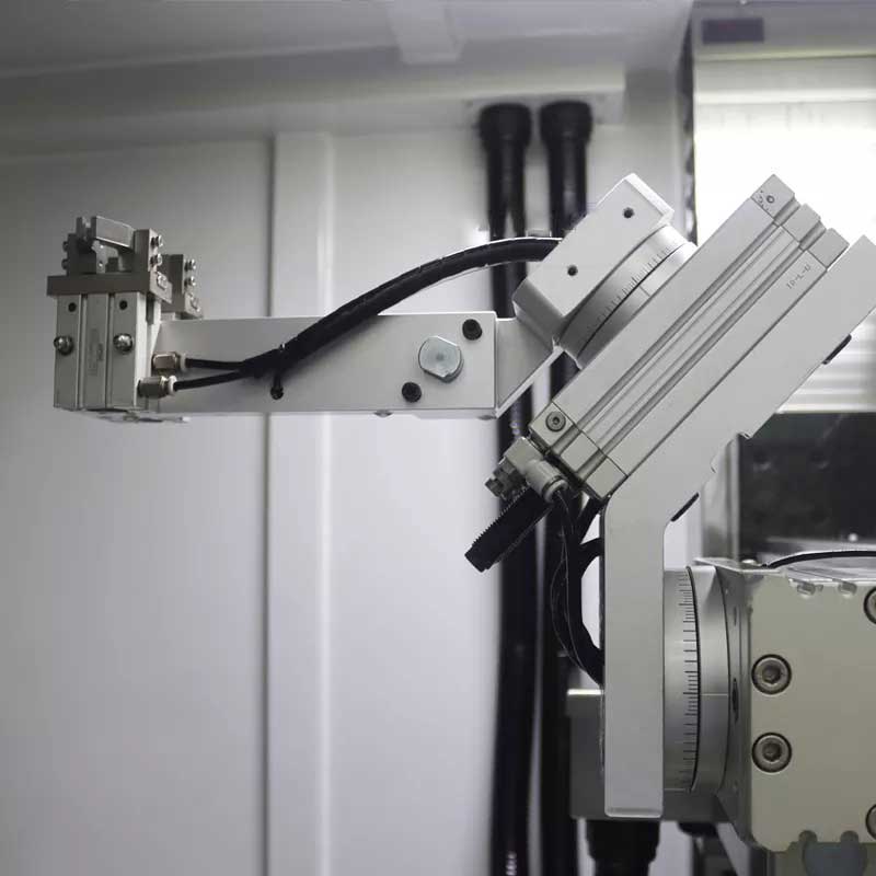 2.The workpiece spindle uses DD direct drive, and the bearing is an NSK precision spindle bearing. It is equipped with Swiss SCHAUBLIN W25 precision collects, completing with pneumatic clamping device.